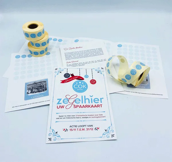 We brengen de bekende COK-zegel terug tot leven. Dit bekende lokale spaarsysteem uit de jaren '70 en '80 introduceert zo een herkenbaar stukje lokale geschiedenis in het straatbeeld.